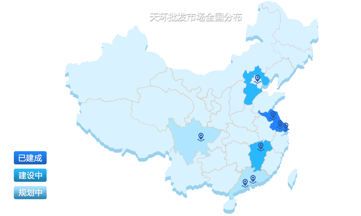 目前已建成的南京和昆山天環凍品食品批發市場,以及在建和規劃中的南昌、廊坊、汕頭、東莞、成都
